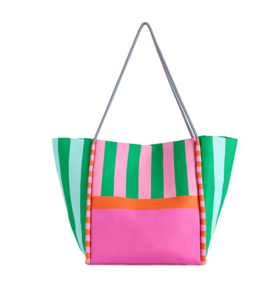 The Taormina Tote is your new go-to for beach days and summer adventures! Featuring bold, vibrant stripes in playful shades of pink, orange, green, and blue, this roomy tote packs a punch in both style and function. Its cord shoulder straps add a trendy twist, while the spacious interior ensures you can stash all your essentials with ease. Complete your set with the matching striped zip pouch, it’s the ultimate set for effortless organization on the go.